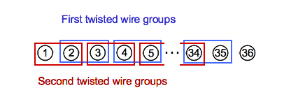If we change the order of the original 14 microbes so the tops all just shift to the left, instead of swapping back and forth, you can see how an extra is created when all the tops shift relative to the bottoms. However no single microbe can really be considered the new one. The area of each new microbe decreases slightly on the average to make 15 total instead of 14. The nuclei undergo a similar effect. The 4 nuclei crossing the center line (8,2,11,5) create 5 slightly smaller nuclei when they shift over.